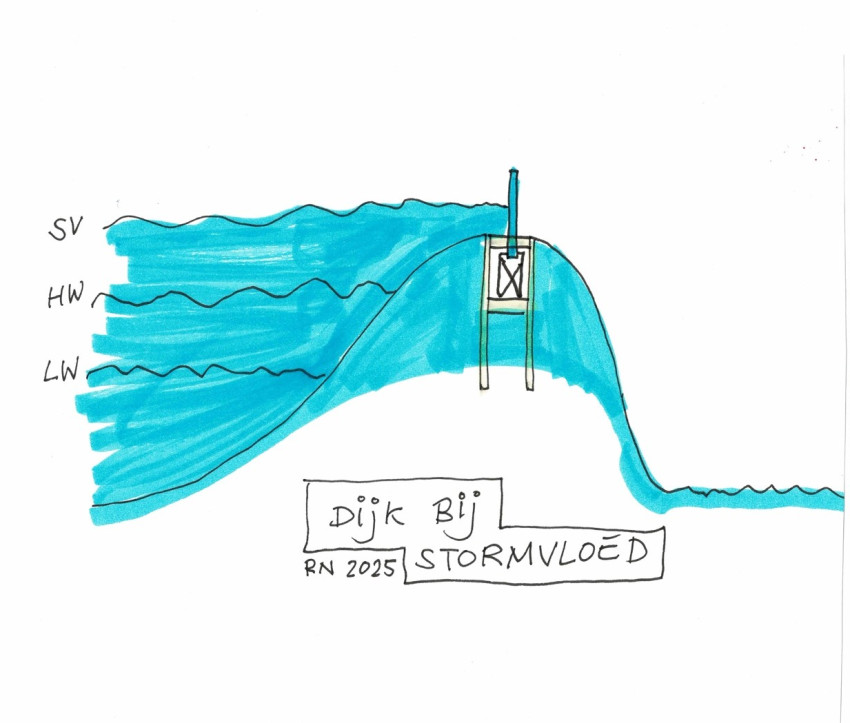 3) golfhoogten bij storm bij een ‘aanval van het water’ op de dijken