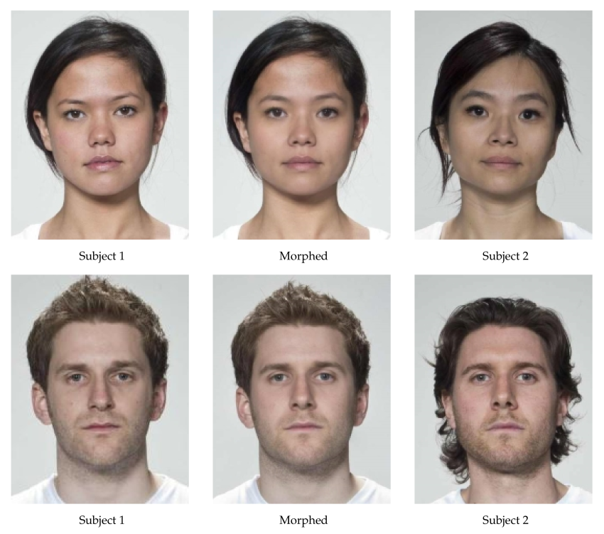 ‘Morphing is geen kwestie van gemiddelden nemen, maar van zorgvuldig mengen’, zegt Azzopardi, die is gespecialiseerd in patroonherkenning. ‘Moderne morphing-algoritmen houden daarbij de belangrijkste biometrische kenmerken voor beide gezichten intact. Dat is mogelijk doordat dat geen exacte waarden zijn, maar het biometrische meetsysteem kleine variaties tolereert.’ Voorwaarde is wel dat de gemengde gezichten niet ál te veel van elkaar verschillen.
