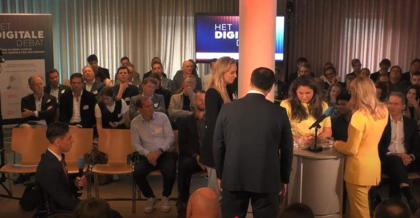 Het Digitale Debat werd maandag gehouden in het Nationaal Archief in Den Haag, op initiatief van Open Overheid en verschillende brancheorganisaties uit de digitale industrie. In de zaal zat een mix van ambtenaren, kandidaat-Kamerleden en afgevaardigden van genoemde organisaties.