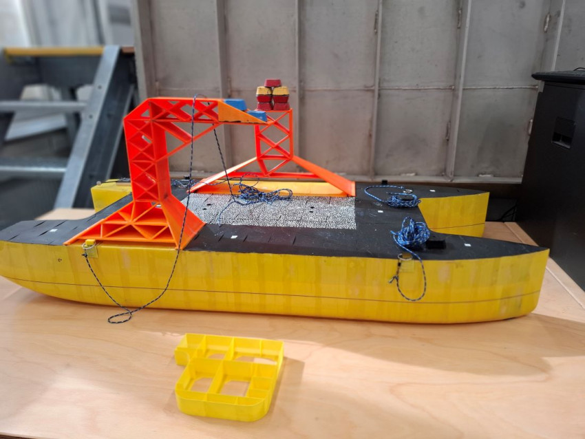 De schepen zijn uitgerust met camera’s, sensoren en een besturingssysteem dat ze autonoom op elkaar laat reageren, en ervoor zorgt dat ze niet van hun plek komen of tegen elkaar aan drijven. Het is een simulatie van een onderdeel van een heavy lift-operatie zoals het installeren van een windturbine, heeft transport-ingenieur Vasso Reppa net uitgelegd. Het betreft hier een geavanceerd staaltje technologie.