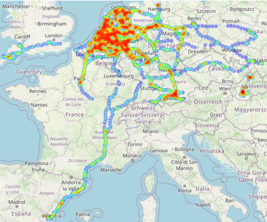 Voor het onderzoek, dat nog niet is afgerond, rijden nu chauffeurs rond met de achttien verschillende voertuigen door Europa, variërend van vrachtwagens en bussen tot bestelwagens en personenauto’s. Op die voertuigen zitten sensoren die de intensiteit van het invallende licht meten, en die koppelen aan tijdstip en locatie. Meetresultaten worden over het mobiele netwerk doorgestuurd naar een centraal punt. Alles bij elkaar hebben de voertuigen tot nu toe meer dan een miljoen kilometer afgelegd, met name in de Benelux.