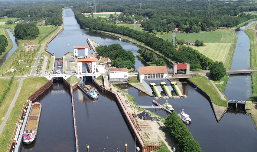 Witteveen+Bos ontwikkelde een drijvend gemaal met buisvijzels dat ook bij lage waterstanden water uit de IJssel kan oppompen én in natte perioden energie opwekt.