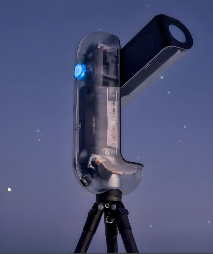 Vespera II – X is een heruitgave van het apparaat dat de Franse telescoopbouwer Vaonis anderhalf jaar geleden uitbracht. Hij werkt hetzelfde als zijn voorganger, maar heeft een transparante behuizing waardoor gebruikers een kijkje krijgen binnenin het mechaniek en de 216 onderdelen kunnen zien waaruit de telescoop bestaat.