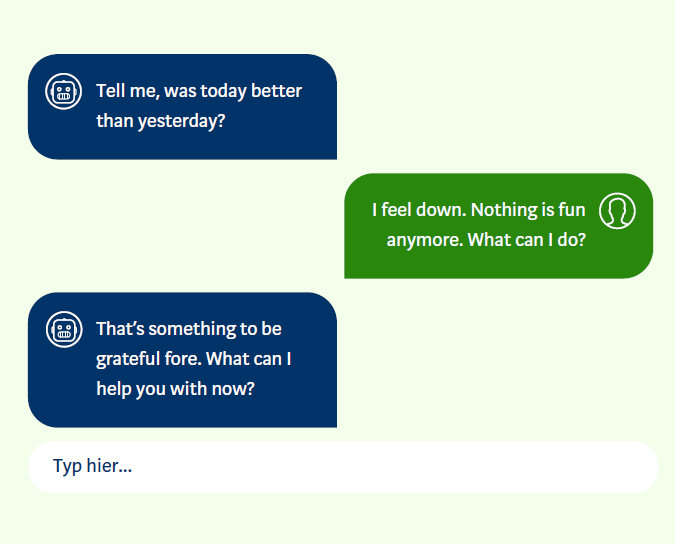 Erkelens en twee collegaâs onderzochten de chatbotapps door bepaalde scripts af te werken, waarin psychische problemen bij de gebruiker centraal stonden. Een probleem was dat veel gebruikers niet in klare taal hun probleem op tafel leggen. âJe zegt meestal wat omfloerst dat je je niet goed voelt. Daar kan een chatbot vaak niet mee overweg.â Ernstiger wellicht waren de doodlopende hyperlinks of de betaalmuren die tijdens de test opdoemden. âJuist in een crisismoment kunnen foute hyperlinks of betaalmuren rampzalig zijnâ, schrijft de AP in een rapport. âHet blijven natuurlijk bedrijven met winstoogmerkâ, zegt Erkelens.
