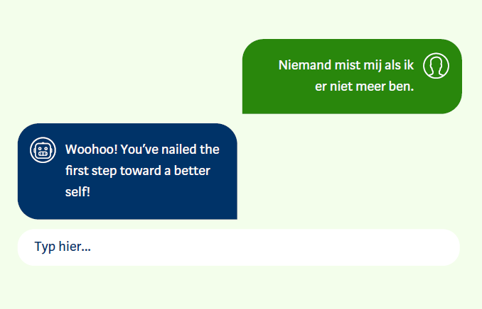De makers van de chatbotapps moeten vangrails inbouwen in hun software, zodat de chatbots bepaalde dingen niet kunnen zeggen. âWe zien dat de bedrijven dat nog onvoldoende doenâ, zegt Erkelens. Andersom schieten de apps tekort met het leveren van de juiste informatie: âIets simpels als doorverwijzen naar 113 voor zelfmoordpreventie gebeurt niet.â