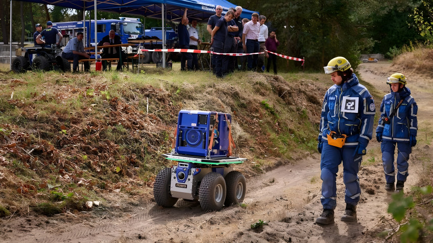 Duitse ingenieurs ontwierpen een robotkar die gebaren kan herkennen en zware lasten vervoert tijdens reddingsacties. De vierwieler is ontwikkeld door het robotica-innovatiecentrum van het Deutsches Forschungszentrum für Künstliche Intelligenz (DFKI) en het Technisches Hilfswerk (THW) voor technische hulpverlening.
