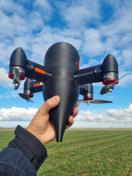 Intussen werkt Delft Dynamics ook, in opdracht van Defensie, aan de BASTA. De Jong: ‘Dat is een interceptor-drone, om te gebruiken als er geen andere opties meer zijn.’ De BASTA gaat op de vijandige drone af, vindt deze met behulp van zijn sensoren, en botst er hard tegenaan. Als hij mist, kan hij zichzelf nog opblazen met een explosief en de vijandige drone meenemen in de verwoesting die dat oplevert.